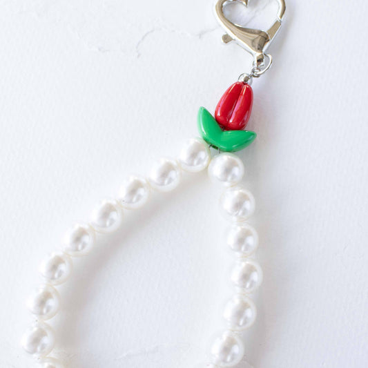 Faux Pearl & Tulip Bag Charm