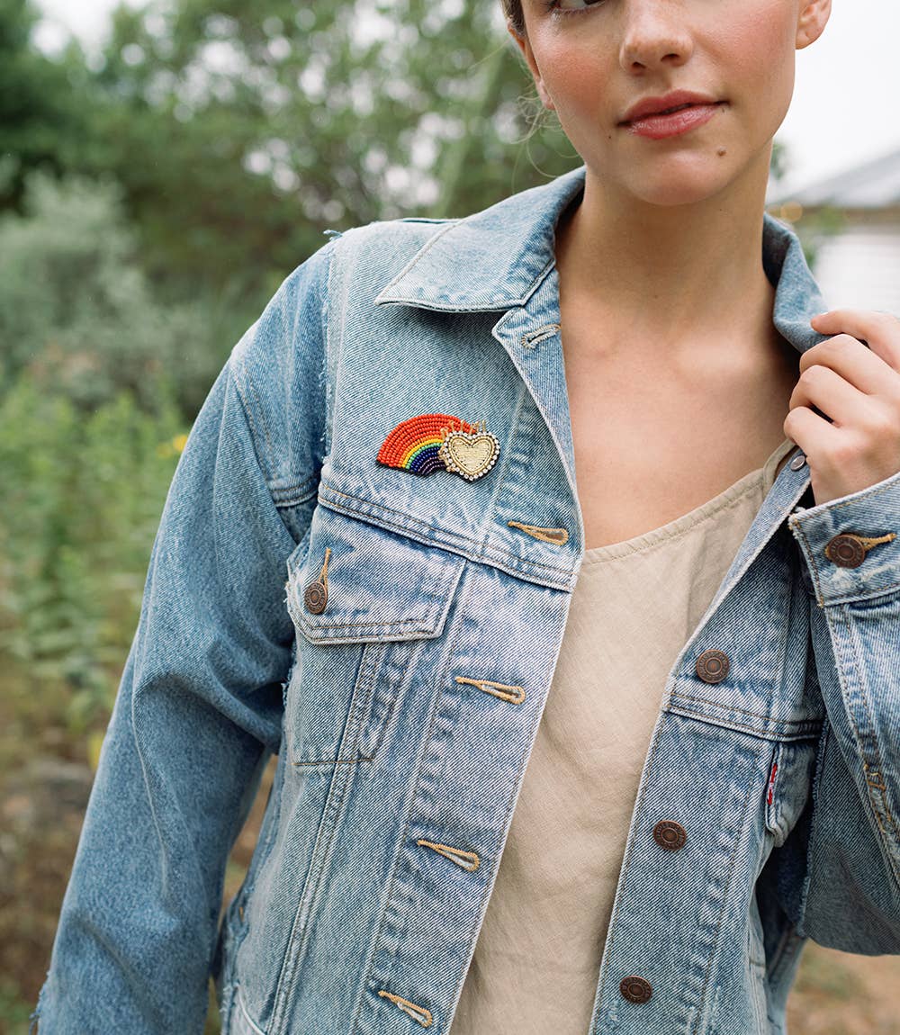 The Bala Mani Beaded Rainbow Brooch Pin is handcrafted by artisan makers in India, who use colorful beads, thread, and sequins to create cute motif brooches. Wear or gift a single pin of a favorite motif or together with other pins to show off a unique sense of style! This bright rainbow with a beaded heart is sure to brighten up someone's day.