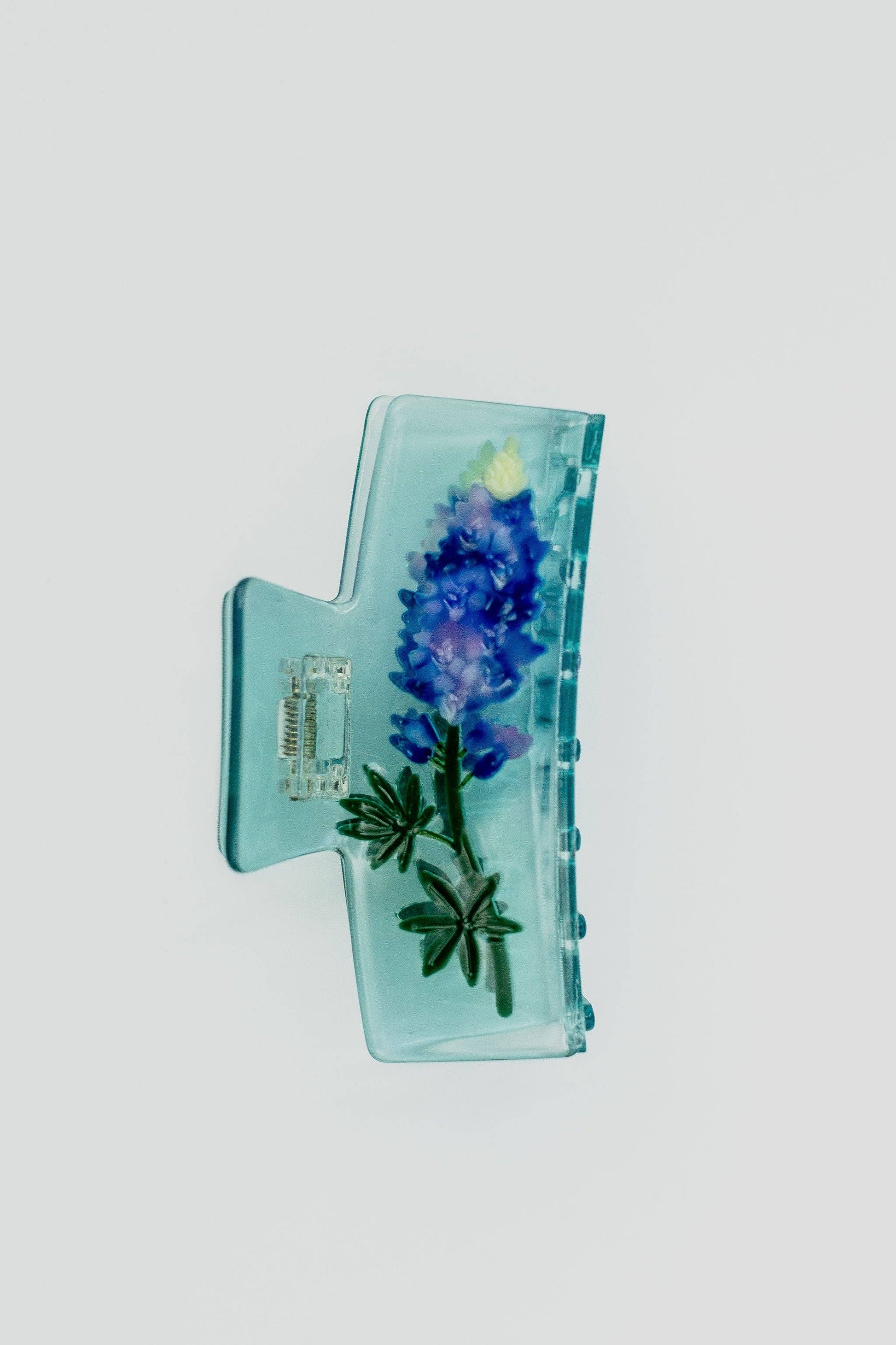 The Bluebonnet Claw Hair Clip captures that feeling in a wearable form. Featuring every Texas girl’s favorite springtime bloom spliced into a modern, boxy rectangular body, this floral claw clip blends nostalgia with clean, contemporary design.