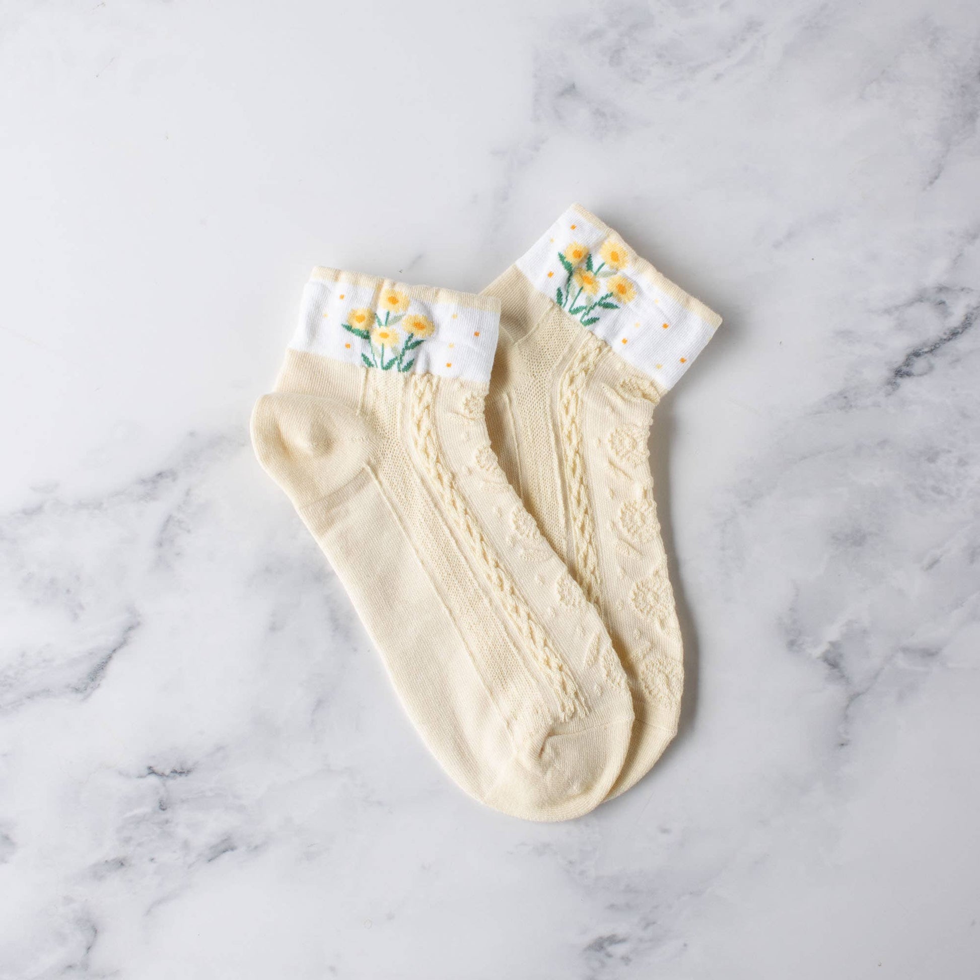 Adult Size 80% Cotton ,10% Spandex, 10%Polyester Machine Wash Stay comfortable and stylish with these Floral Casual Ankle Socks.