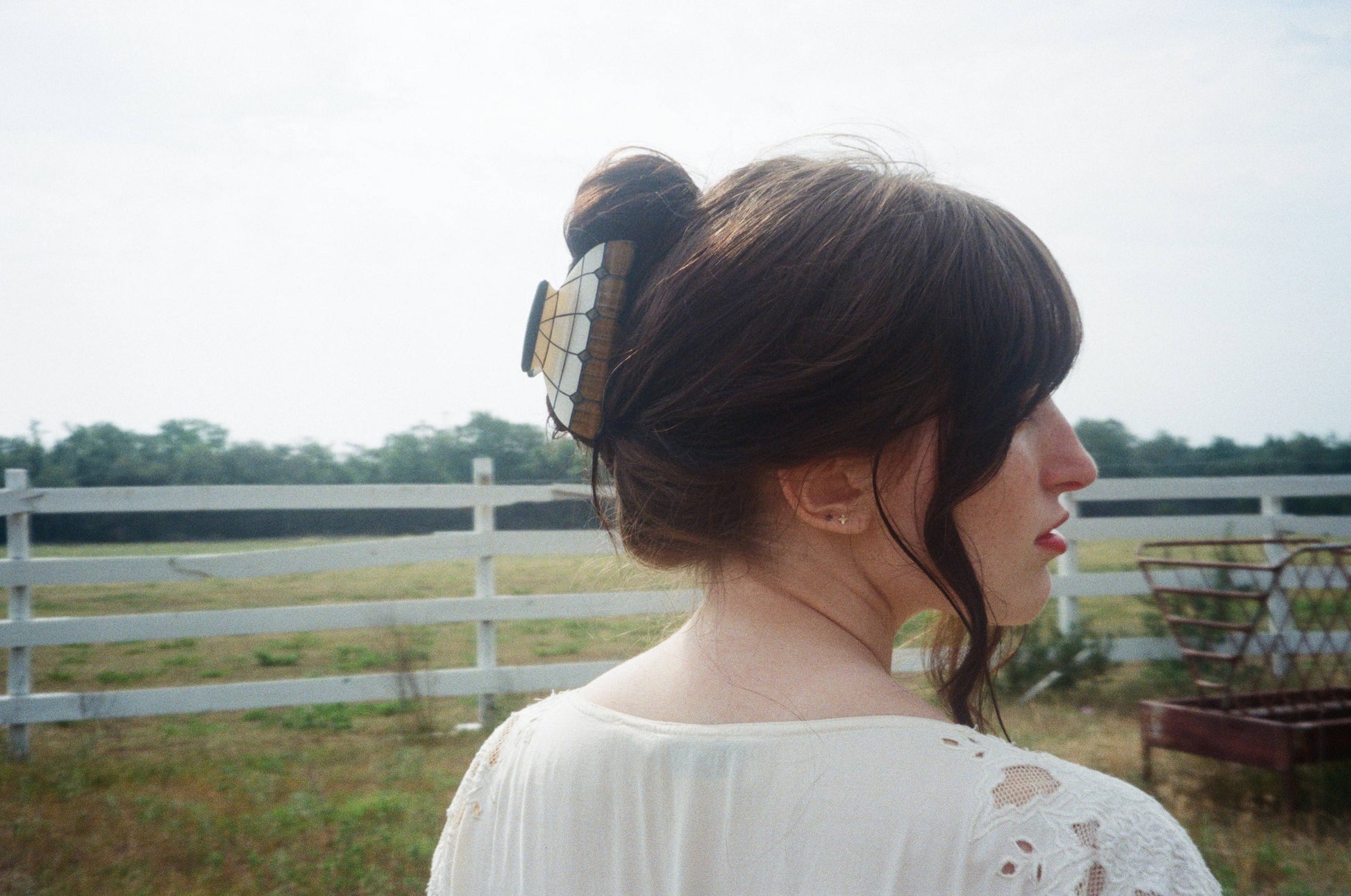 Whether you’re pulling your hair into a quick twist, a relaxed updo, or a half-up style, the Geometric Lamp Claw offers a secure hold while adding depth and glow to your look. It’s the piece that sparks compliments, starts conversations, and effortlessly elevates everyday outfits.