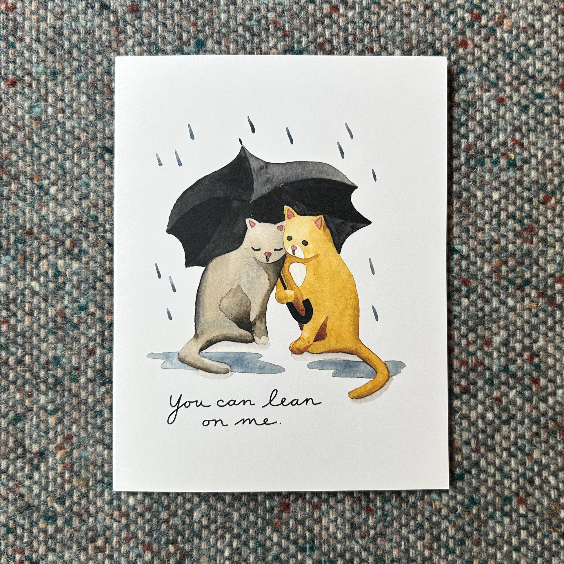 John Dory greeting cards were created to be honest, vulnerable and authentic – with simple messages that are from the heart, and original watercolor artwork that was created by hand. These sturdy cards measure 4.25" x 5.5" (A2 size), and are packaged individually in a clear sleeve with an ivory envelope. They are printed on FSC-Certified, 100# smooth, matte cover paper at a small print shop in Philadelphia. Blank inside. The envelopes are sourced from Michigan's family-owned French Paper Company. For the greeting card category of Support, this card depicts cats in the rain under an umbrella with the phrase "You can lean on me." John Dory Paper is a division of Fresh Fish Quality Graphics – a small, woman-owned design studio located in Audubon, New Jersey. We aim to create art that celebrates our unique place in the world and connects us to each other, featuring special interests and local lore.
