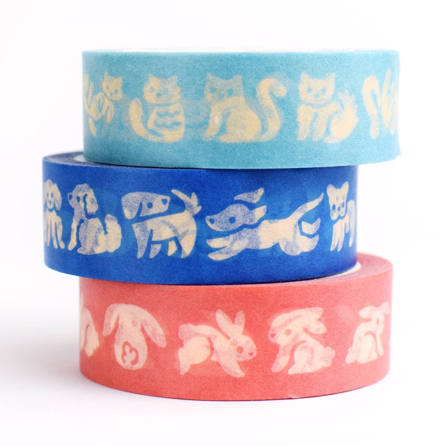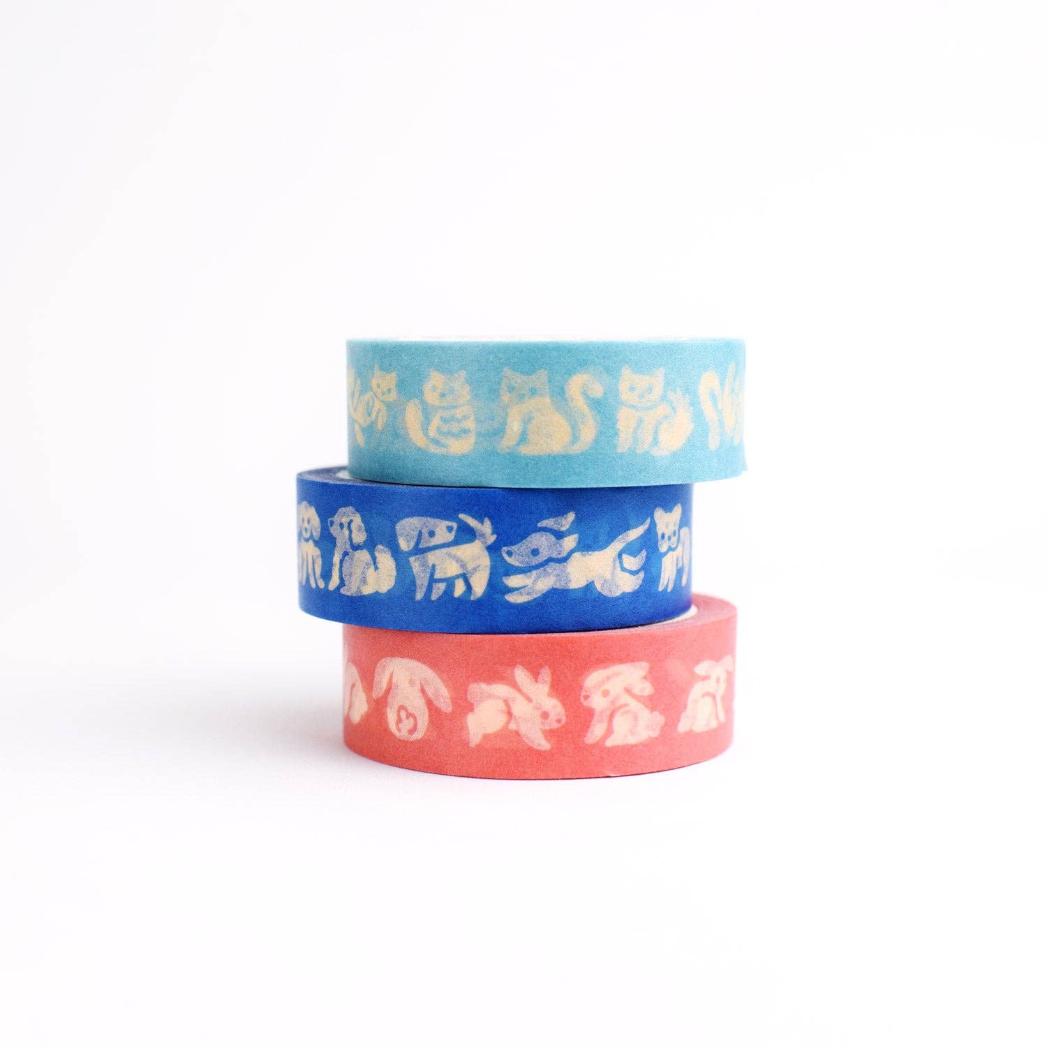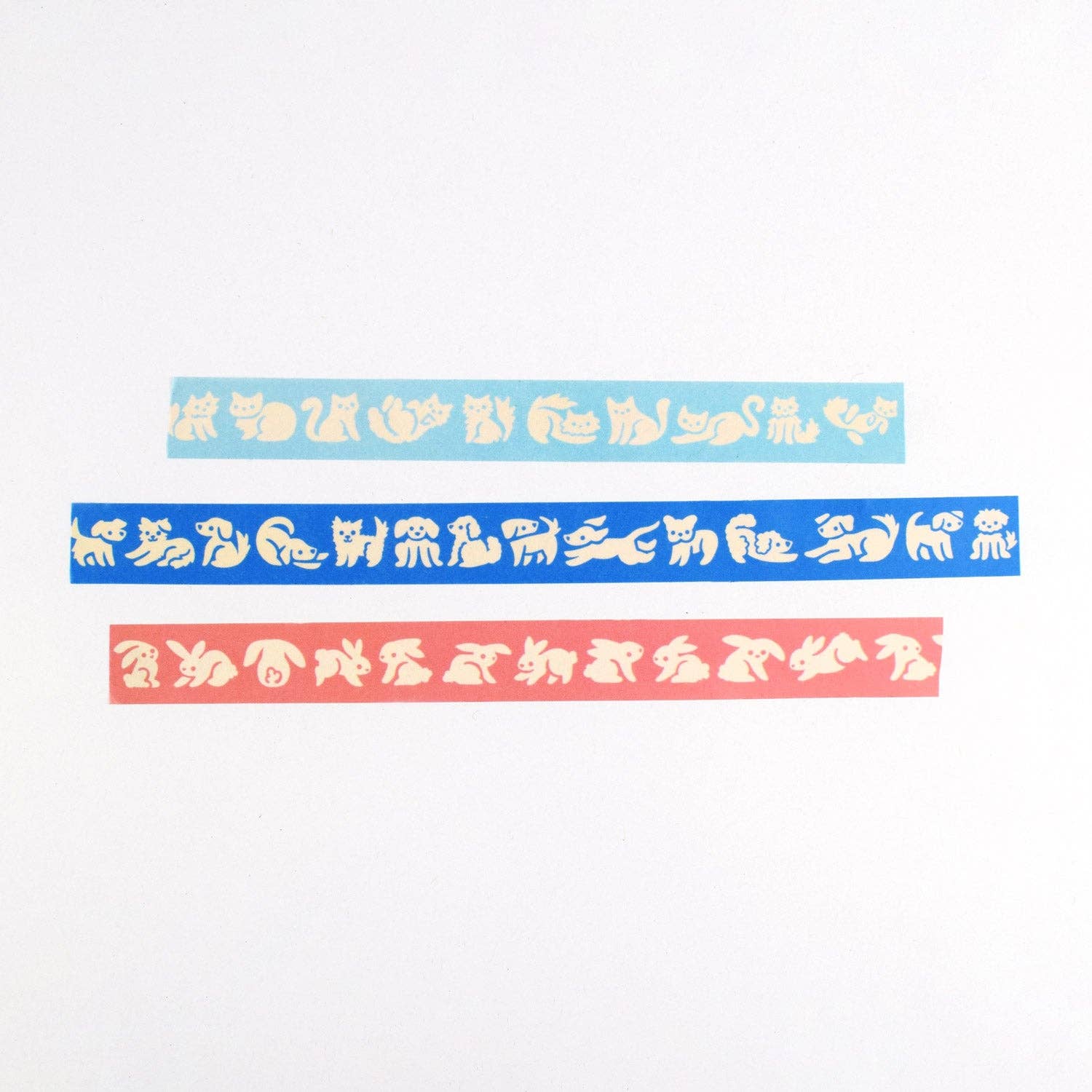 Brighten up your journal, personalize an envelope, or organize a notebook with our Pet Parade Washi Tape Set featuring dogs, cats, and rabbits. This set of 3 colorful tapes made from natural rice paper with soy inks is perfect for scrapbooking, bullet journaling, gift wrapping, and adding a personal touch to everyday items.