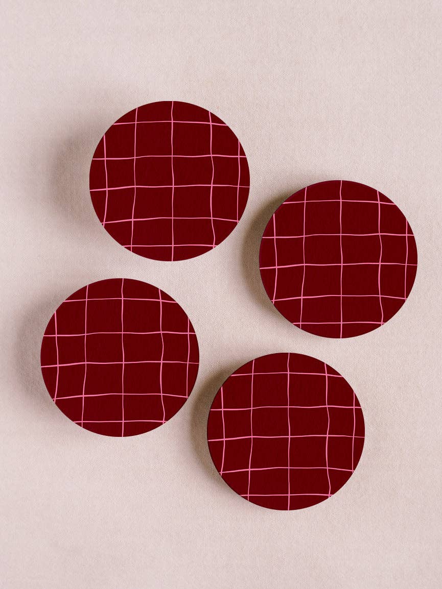 Add a modern touch to your table with this set of 4 coasters, featuring a dark red windowpane design with a soft, minimalist vibe—perfect for elevating everyday gatherings.