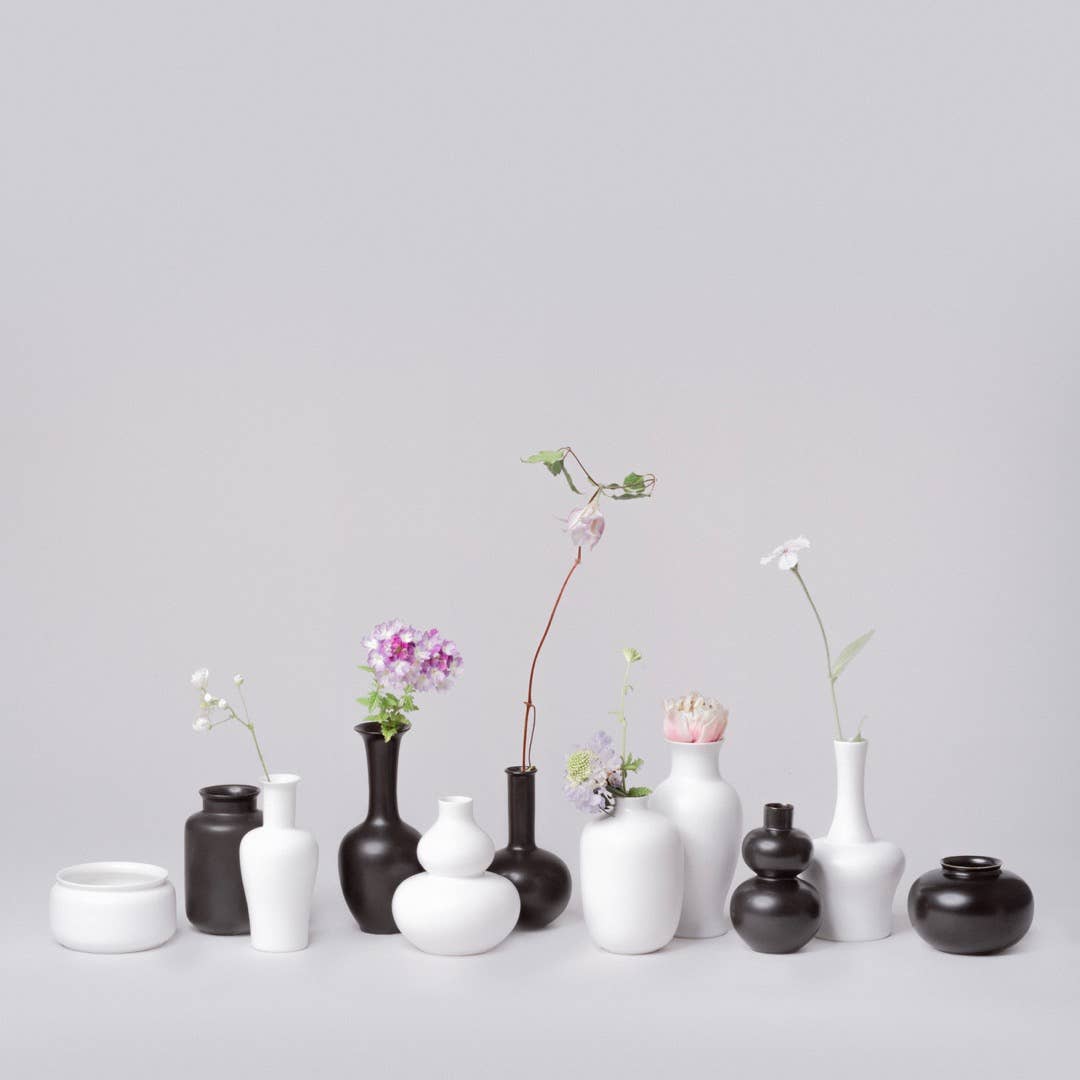semi-matte glazed porcelain in black or white H x D: 5 in x 3.125 in (12.7 cm x 8 cm)
