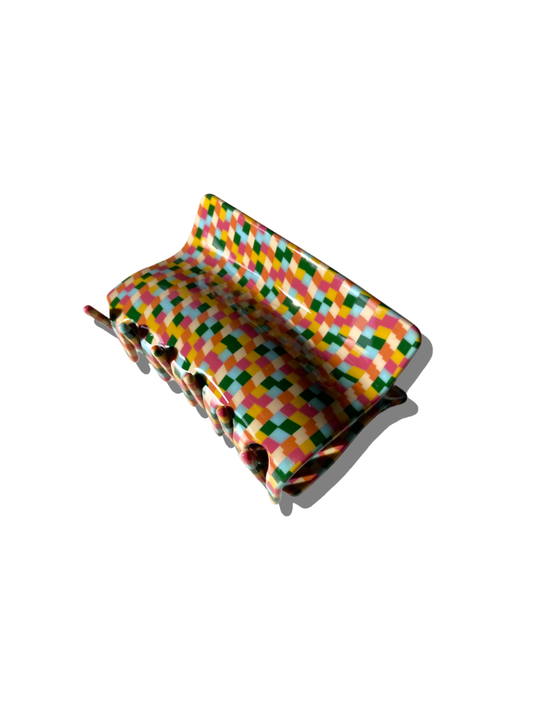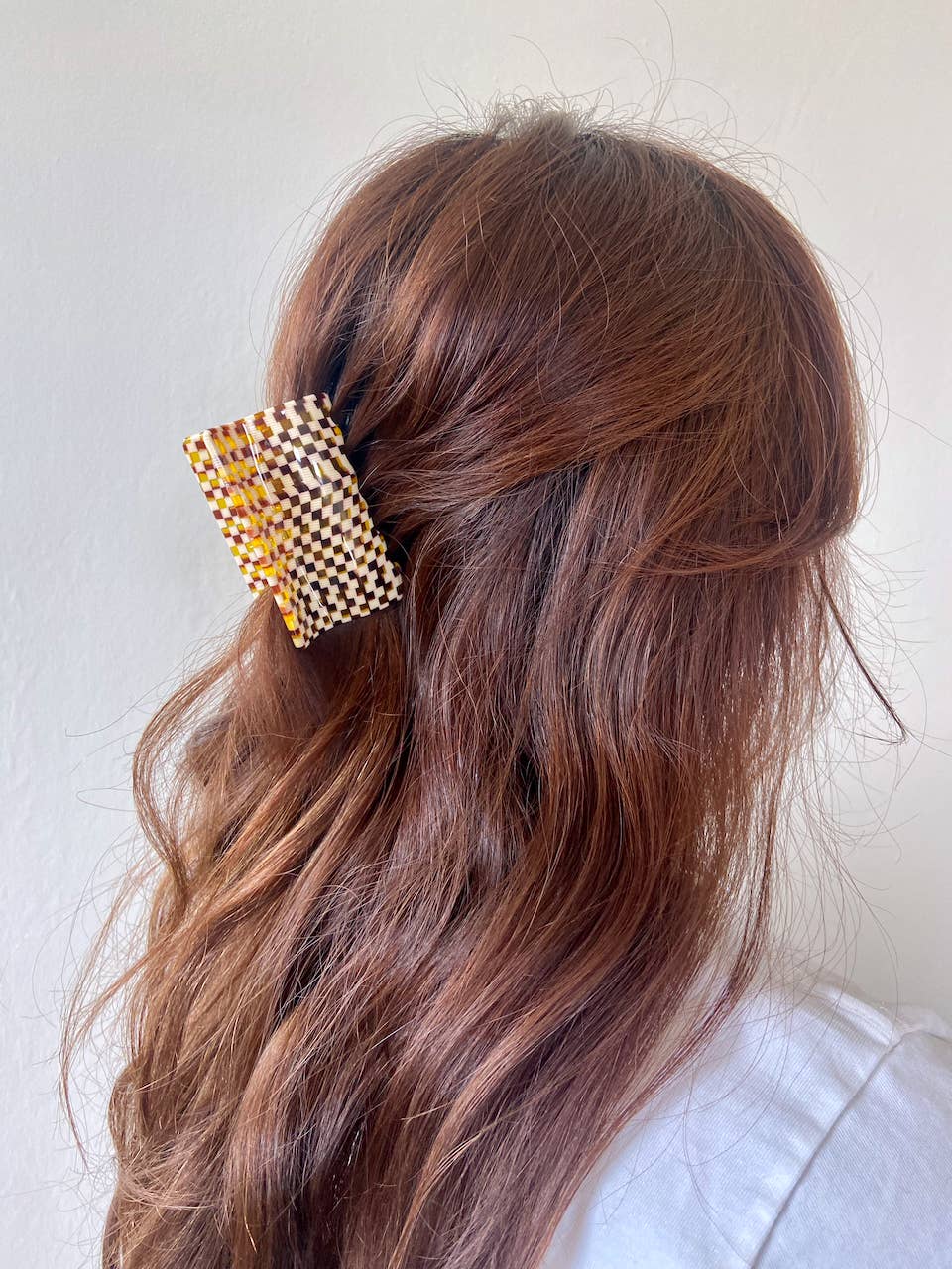 This claw clip is made of cellulose acetate, an eco-friendly, biodegradable material made from recycled wood pulp.