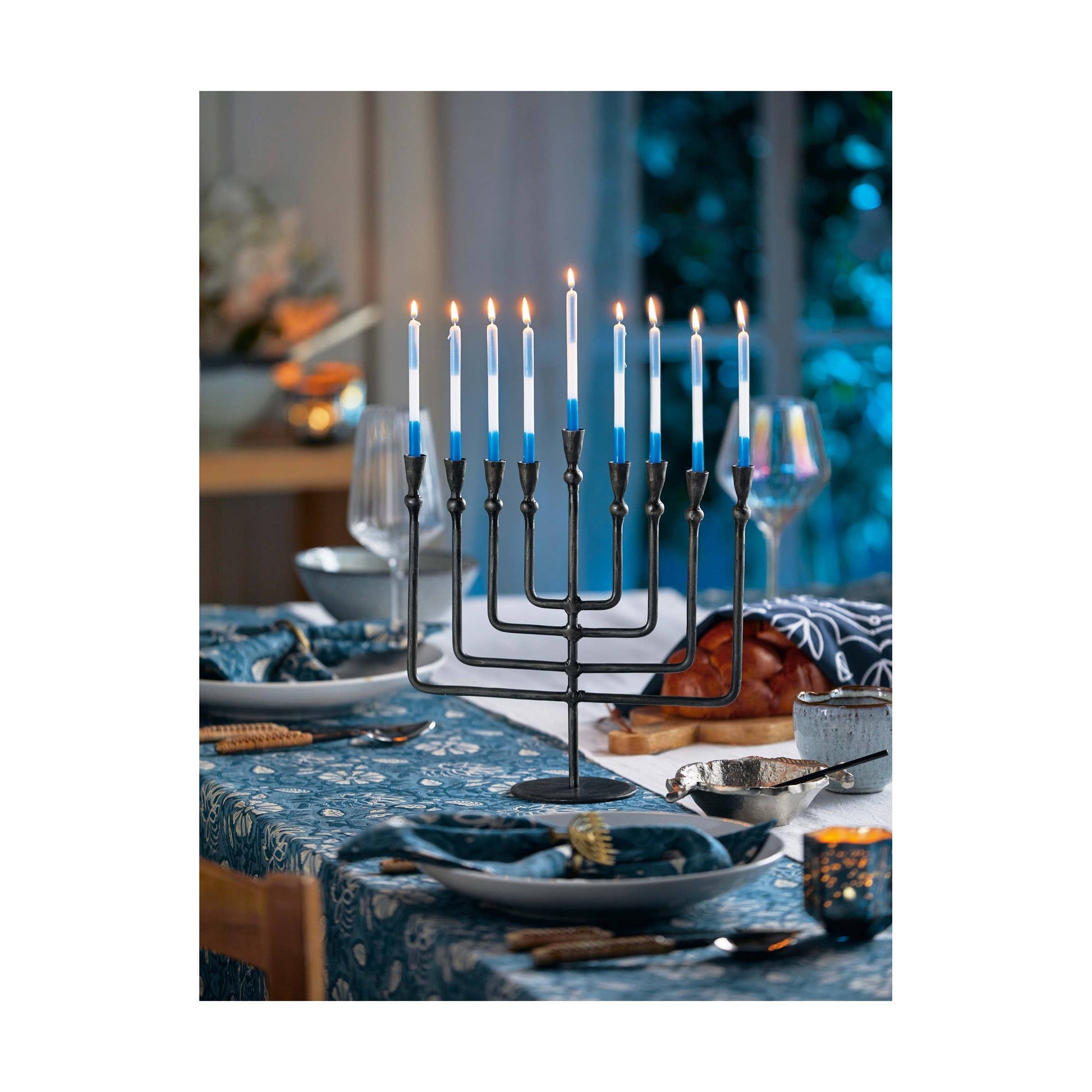 these white hanukkah dipped taper candles are a classic and elegant addition to any hanukkah celebration. the candles are made from 100% paraffin wax and feature a hand-dipped finish. the candles are perfect for both everyday use and special occasions.